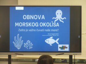 U utorak, 25. studenoga 2025. učenike 6. a, 7. a i b, te 8. a razreda naše škole znanstvenica s Instituta za oceanografiju i ribarstvo u Splitu dr. sc. Daria Ezgeta Balić upoznala je s važnošću i mogućnostima obnove morskih ekosustava. Aktivnost je održana u sklopu CLIMAREST i Blue – conect 2 projekata, a realizirana je na satovima Prirode/Biologije. Projekte financira Europska Unija. IZOR je jedan od 18 partnera CLIMAREST projekta duž europske obale.