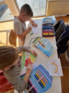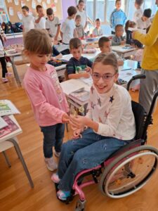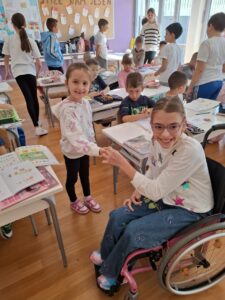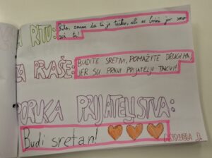 Učenici 1.B razreda izražavali su se likovno na temu Prijateljstvo, a učenici 5.B razreda osmislili su poruke o prijateljstvu. Svoje radove poklonili su djevojčici Riti koja ih je s radošću primila.